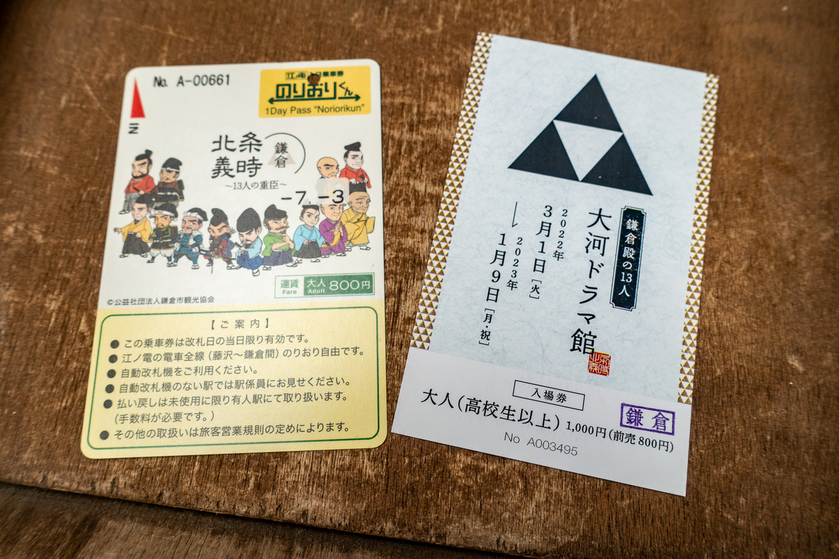 ここからは、先ほど鎌倉駅で購入していた江ノ電乗り放題切符「のりおりくん」と大河ドラマ館のセット券で江ノ電に乗ります